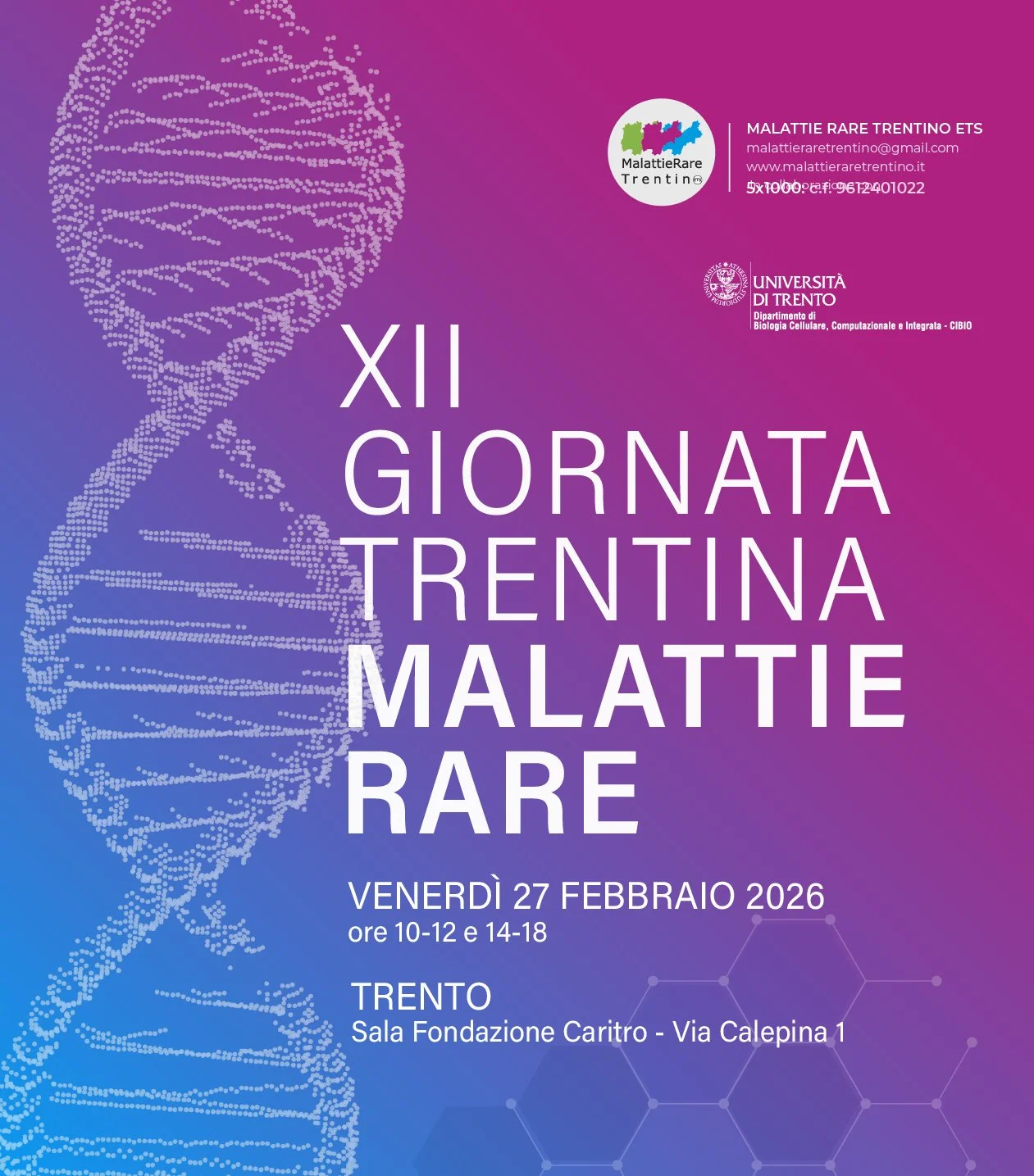 La Giornata Trentina delle Malattie Rare del 27 febbraio 2026 è stata un’iniziativa istituzionale volta a sensibilizzare e informare sul tema delle patologie rare ed è stata promossa e organizzata dall’Associazione in partnership con CIBIO.