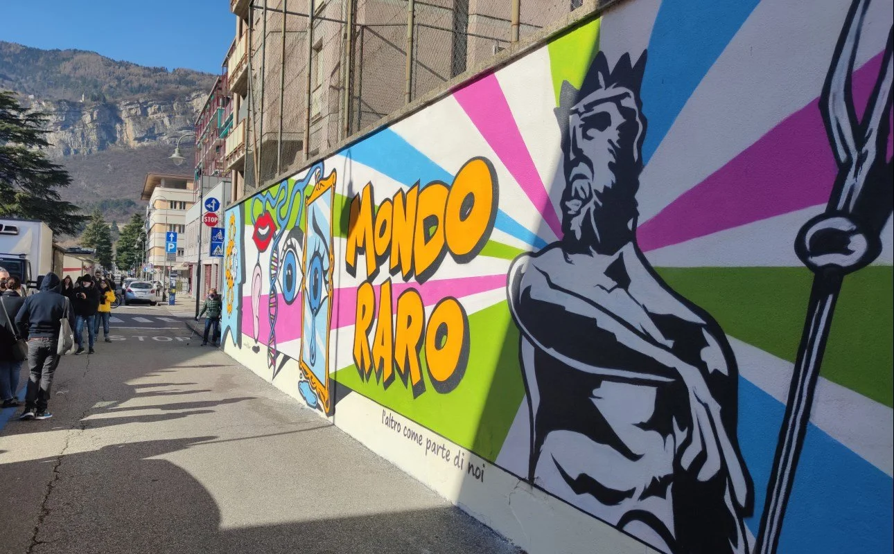 Il Murale nasce per essere testimone nel tempo di una realtà spesso in-visibile, il muro cambia identità diventando uno strumento per raccontare attraverso la Street Art, il Mondo Raro. L'Opera è stata realizzata in stile Pop Art, da Fulvio Bernardini in arte Fulber, la trasposizione su muro è di Alan Vitti in arte Senka Semak, con la collaborazione di Andrea Sgrò (Writers professionisti). Massimo Molinari, ora presidente della M.R.T. e nel 2012 presidente di A.E.T. capofila del Coordinamento Trentino Associazioni Malattie Rare in Rete, è l’ideatore e coordinatore del progetto, Mondo Raro: “l’altro come parte di noi”. La parete utilizzata misura 55mq. visibile in Via Cristoforo Madruzzo, Oratorio del Duomo. L’opera è stata inaugurata in occasione della Giornata Internazionale e Trentina delle Malattie Rare 2022.